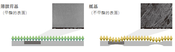 依托均匀的植砂和平整的背基,与纸基产品相比,薄膜产品能够带来更好表面效果,无不均匀的划痕。